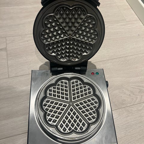 Egner seg til steking av tradisjonelle vafler på kjøkkenbenk eller bordflate med varmebestandig overflate.