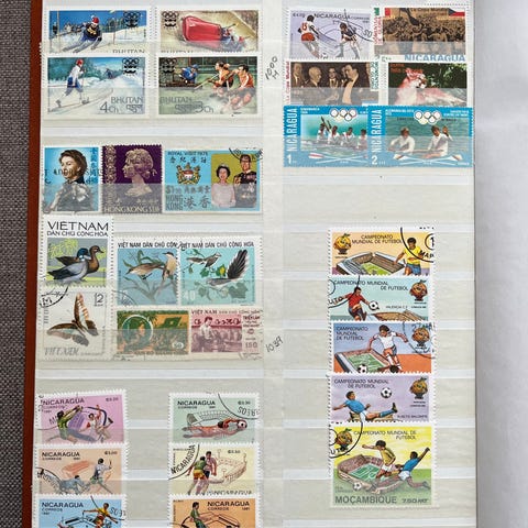 Søkeord: frimerker, frimerkesamling, frimerkealbum, Polen, Polska, Finland, Suomi, Nederland, Holland, Spania, Mongolia, OL, olympiske leker, sport, dyr, fugler, kunst, vintage, samlerobjekt, samleobjekter, filateli, hobby, retro