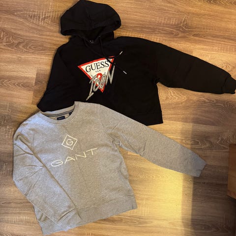 Sort str S og hvit str M. Lange kule gensere. Kan sendes til 69 kr. 200 kr stk
