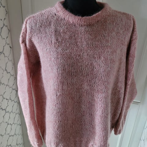 Genseren er strikket I Alpakka Magic, ferskenfarget.