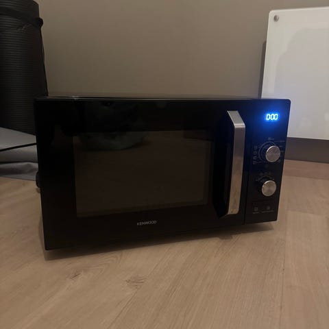 Whirlpool mikrobølgeovn i svart utførelse. Modellen har front med digitalt display og betjeningspanel med flere forhåndsinnstilte programmer og tidsinnstillinger. Innvendig er det roterende glassplate. Egnet til oppvarming, tining og enkel tilberedning av mat i kjøkkenet.
