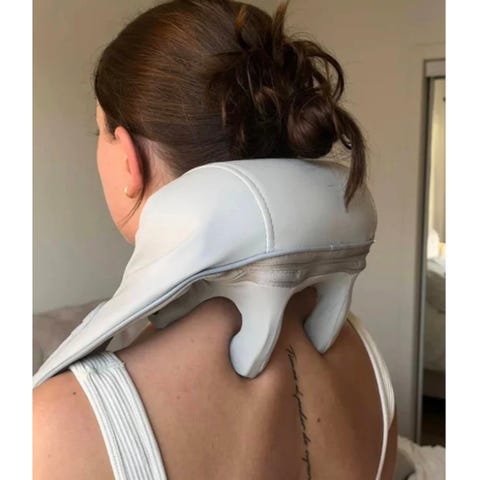 Dette er et massasjeapparat designet for å lindre spenninger og smerter i nakke- og skulderområdet ved hjelp av vibrasjon og varme.
