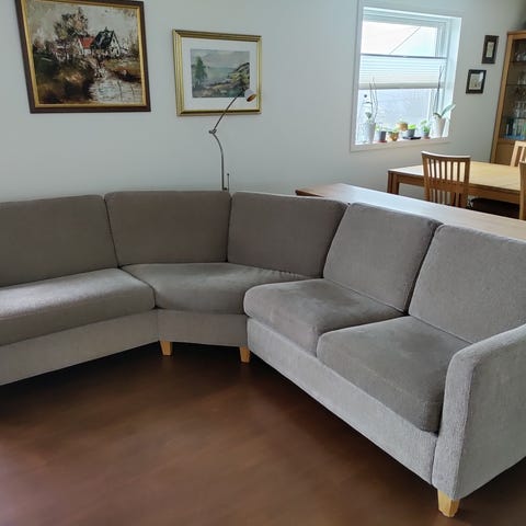 Buet sofa i dansk design. Avtagbare trekk. Selges billig mot henting.