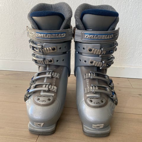Passer str ca 37. Dolomite alpinstøvler i blå plast med grå og sølvfargede detaljer. Støvlene har fire justerbare spenner og powerstrap øverst for bedre tilpasning rundt leggen. Sålen er strukturert for godt feste mot bindingene. Egner seg til alpint bruk i vanlige alpinbindinger.