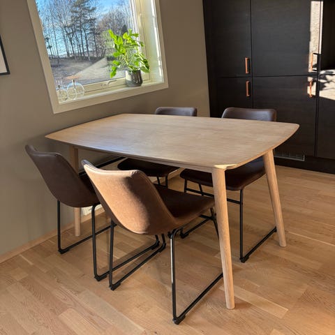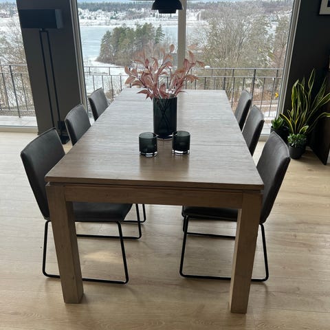 Selger vårt nydelige spisebord i heltre oljet eik fra Skeidar kjøpt høsten 2023. Vi ser oss nødt til å selge bordet da vi pusser opp og endrer planløsning, som gjør at vi ikke får plass til bordet etter oppussing. Bordet har minimalt med bruksmerker.