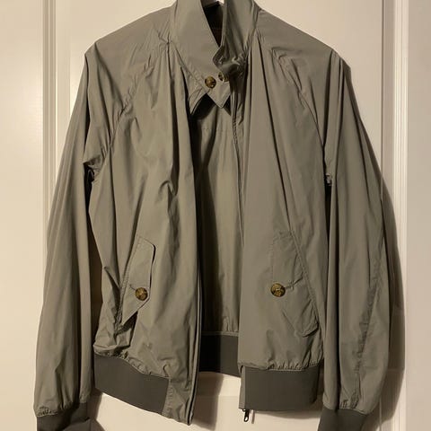 Baracuta jakke for herre i størrelse S. Jakken er svart og laget i polyester. Modellen har glidelåslukking foran, krage og ribbestrikket kant nederst og ved ermene. Praktiske sidelommer med knapp. Passer som lett ytterjakke til hverdagsbruk og overgangssesonger.