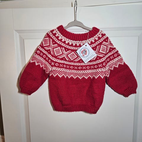 Ny mariusgenser ca. str. 4år. Strikket i Drops karisma som er 100 % Superwash ull.