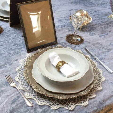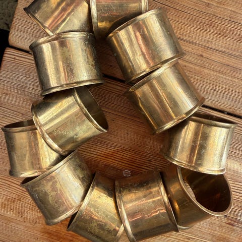 De har en oval form og en gyllen overflate som gir et dekorativt preg til bordleggingen.