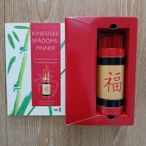 Boks med mediteringskuler, oppbevaringspose og instruksjonsbok.