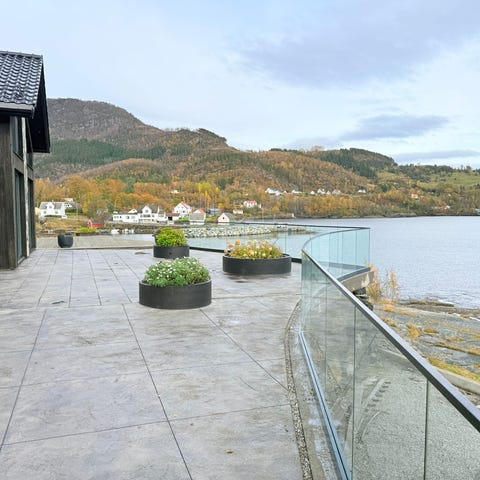 Glassrekkverk i aluminium – pent brukt