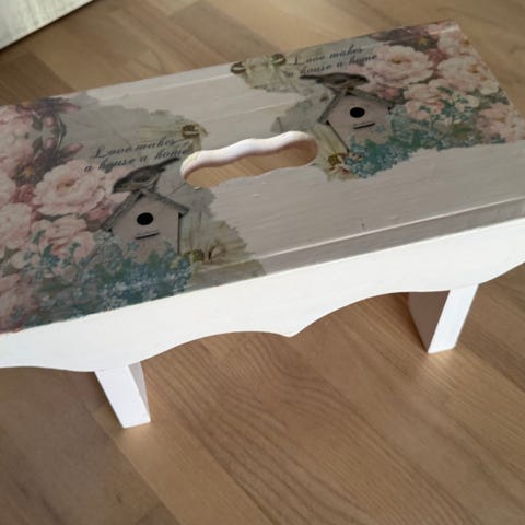 Søkeord: krakk, liten benk, shabby chic, vintage, landlig, dekor, interiør, fotorekvisitt, rekvisitt til studio, barnefotografering