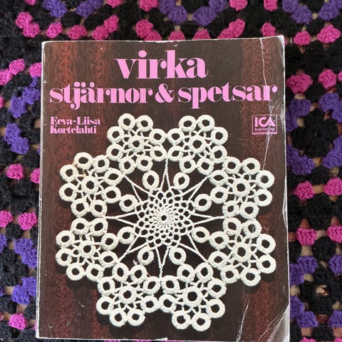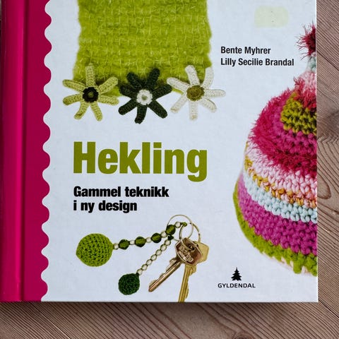 Heklebok, innbundet. Boken er sett i en gang, ikke brukt.