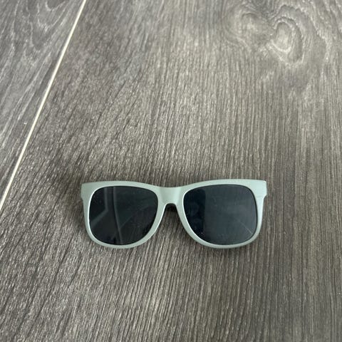 Solbriller sett med to par i svart farge. Begge parene har innfatning i plast med buede stenger og mørke glass. Passer som enkle solbriller til hverdagsbruk for ungdom eller voksne, avhengig av størrelse. Kan brukes utendørs ved sollys for å skjerme øynene.