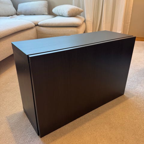 Merker på underside og side etter å ha vært del av større bestå møbel.