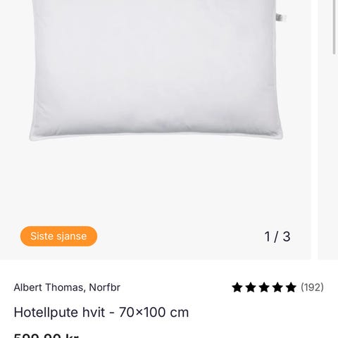 Selger pent brukt hotellpute fra Kid. Kun brukt som støtte/ryggpute.