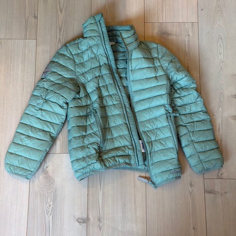 Reflex dunjakke for barn i størrelse 146. Jakken er grønn og laget med ytterstoff og fôr i 100 % nylon. Fyllet består av 90 % andedun og 10 % fjær. Modellen er unisex og har gjennomgående glidelås foran samt glidelåslommer i sidene. Egnet som lett og varm ytterjakke til hverdagsbruk for barn. Obs har vært et lite hull på armen som har tekstiltape over seg.