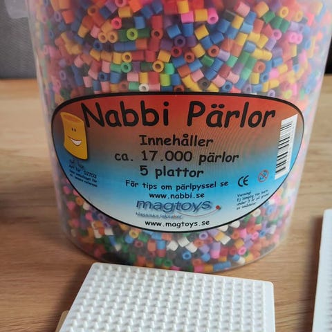 Store perler med flere forskjellige perleplater, perfekt til små barn.