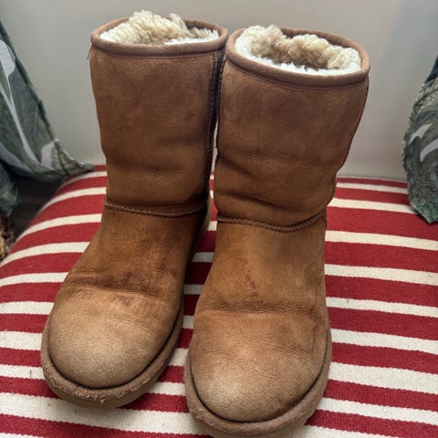 De er godt brukt, ullforet inni er ganske slitt!