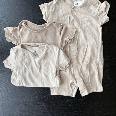 Lindex babysett med kortermet body og shorts i størrelse 68 . Body med omslagsåpning og trykknapper i skrittet. Shorts med strikk og knyting i livet, samt stor bie bak.