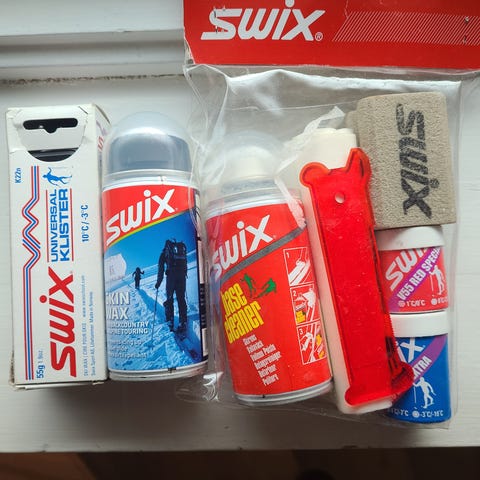 SWIX pakke med glidere og universalklister selges samlet. Prisen er for alt samlet.
