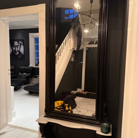 Passer i gang, stue eller soverom som helfigurspeil og avlastningsbord for mindre gjenstander som nøkler, blomster eller dekor.