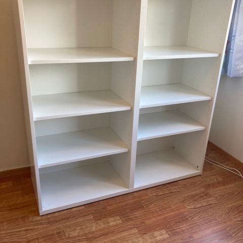 Hvit hylle fra ikea. Aldri brukt, da den ble for stor her. Dessverre så vet jeg ikke mål..