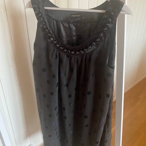 Nydelig sort kjole med draperinger i sidene som gjør den flatterende.