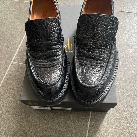 Billi Bi loafers i størrelse 40. Skoene er laget i skinn med glatt overflate og har dekorativ metallspenne over vristen. Klassisk mokkasin-/loafermodell med lav hæl og gummisåle. Innvendig fôr og såle i skinn for økt komfort. Passer til bruk i hverdagen eller til penere anledninger. Lite brukt. Selges fordi de er for store.