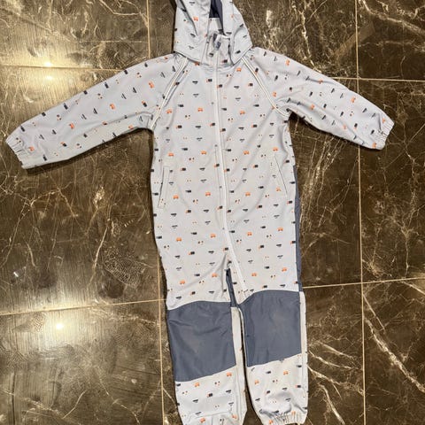 Lyseblå dress i softshell. Godt brukt, men mye god bruk igjen. Jeg tror det er størrelse 116, men usikker.