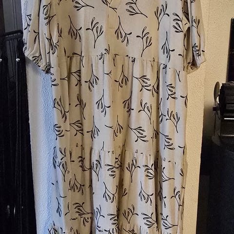 DAY Birger et Mikkelsen kjole i silke i størrelse 36. Kjolen har et flerfarget mønster i nøytrale toner og korte ermer. Rund hals og rett fasong. Ytterstoff i lett, vevd silkekvalitet med glatt fôr på innsiden for bedre komfort. Passer som hverdags- eller penkjole avhengig av styling.