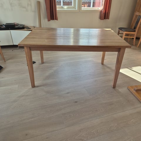 Bordet er i fin stand, men har noen få merker som er lite synlig (se bilder). Det kan ha godt av å bli behandlet med ny treolje.