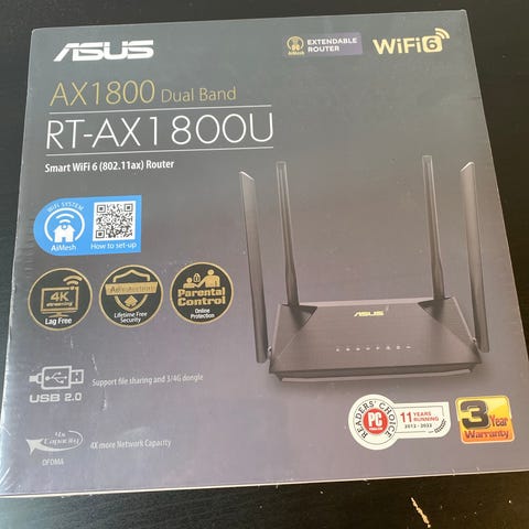 Asus RT-AX68U og ZenWiFi AX Mini router sett i svart. Pakken består av én Asus RT-AX68U router med eksterne antenner og to Asus ZenWiFi AX Mini enheter. Systemet er beregnet for trådløst hjemmenettverk og kan brukes som mesh-løsning for å gi dekning i flere rom eller etasjer. Enhetene støtter moderne WiFi-standarder (WiFi 6/AX) og har flere porter for kablet tilkobling av utstyr som PC, TV eller spillkonsoll. Egnet for bruk i bolig eller mindre kontormiljø hvor det er behov for stabilt trådløst nettverk med flere tilgangspunkter.