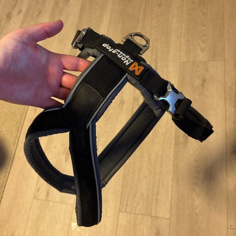 Non-stop dogwear hundesele i svart. Selen har polstrede stropper og justerbare spenner for tilpasning til hunden. Metallring på ryggen for feste av bånd. Egnet til tur og hverdagsbruk for hund.
