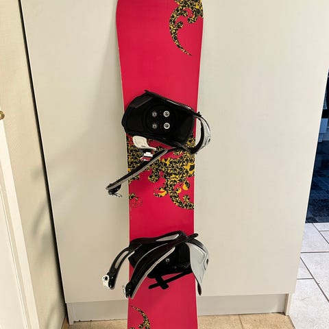 K2 First Lite snowboard på 146 cm med tilhørende K2 Mach-bindinger. Snowboardet har fargerikt grafisk design på oversiden og en mer nøytral underside. Lengden på 146 cm. Bindingene er montert med standard 4x4-innfesting og har justerbare stropper. Egner seg til bruk i alpinbakke og allround kjøring i anlegg. Burton sko str 41. Dette settet er brukt veldig lite som nytt. Er kjørt på noen få turer.