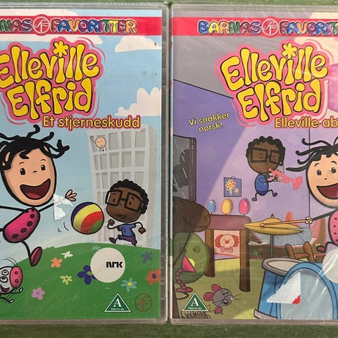 Elleville Elfrid DVD-samling med 2 filmer for barn. Inneholder blant annet titlene «Elleville ablegøyer» og «Verdens største snømann». Norsk tale, produsert i samarbeid med NRK. Egnet som underholdning for barn i barnehage- og småskolealder. Vet ikke om julekort er inkludert for begge er uåpnet. Kun 60kr for begge🤗