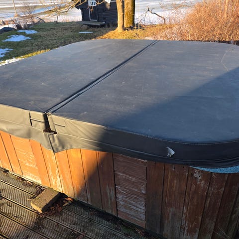 Badet må hentes med kranbil og min 30 til 40 meter lengte. Karet er tømt for vann.