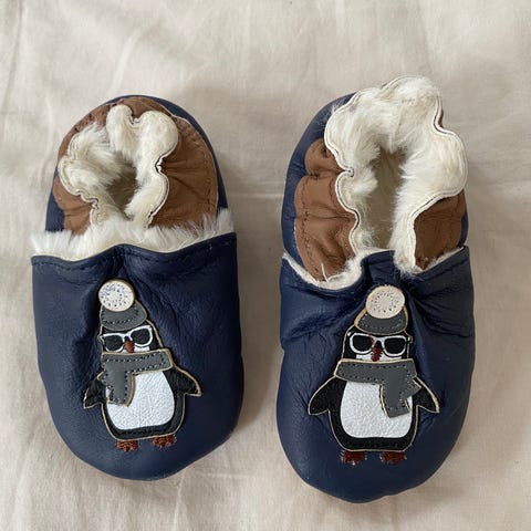 Helt ny med lapp (vi hadde flere tøfler av denne modellen og rakk ikke å bruke dem her).