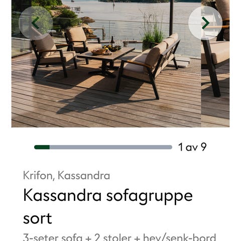 3 seter sofa , 2 stoler , 2 puffer og bord som kan heves og senkes !