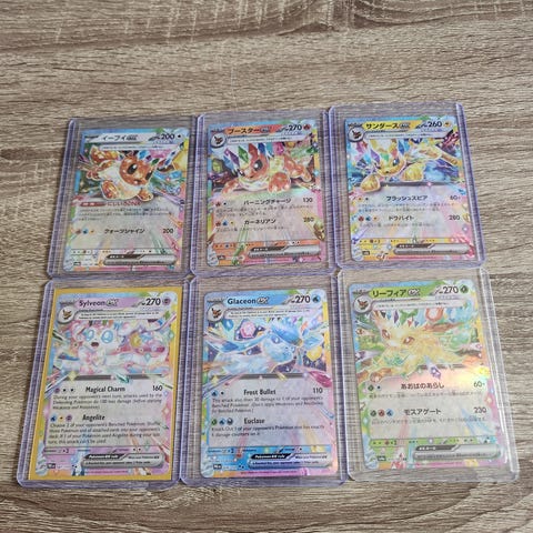 Samlingen består av ulike Pokémon-kort i forskjellige typer og farger, blant annet vann-, ild-, gress-, psykisk- og andre energityper. Kortene ser ut til å være fra ulike serier og utgivelser.