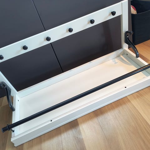 Selges grunnet flytting. Fin entrebenk med god plass til oppbevaring av sko. Har noen bruksmerker, men ikke av betydelig størrelse som jeg kan se.