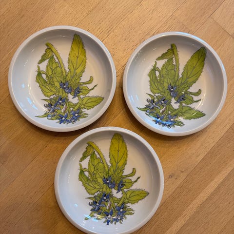 Selger 3 dype tallerkner fra IKEA i serien Midsommar.