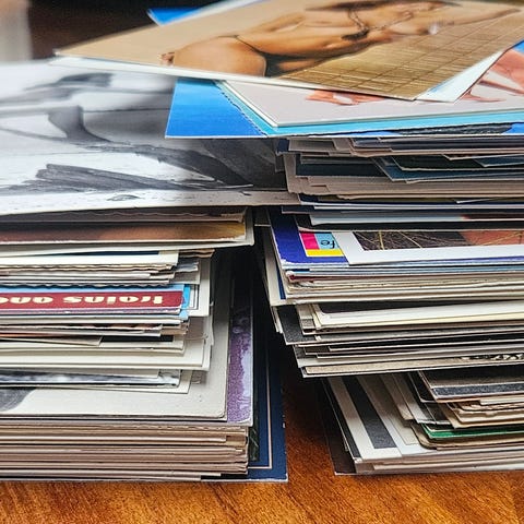 Postkort samling med ulike erotiske motiver. Flere kort med fotografier av par og modeller i undertøy og badetøy, samt ett kort med illustrasjon med teksten «Kjærlighetsuka». Kortene har både fargefoto og sort-hvitt. Egner seg som samlerobjekter eller dekorative objekter for voksne samlere av postkort og trykksaker med erotisk tematikk.