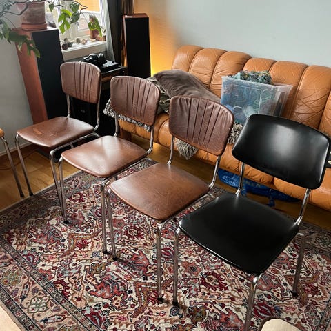 4 stk vintage stoler i skai (bakkeplan)