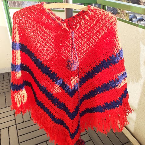 retro poncho i herlige farger