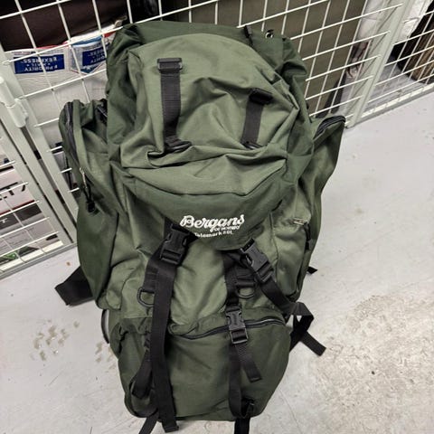 Grønn Kinetic tursekk m innebygd stol. Stort hovedrom som er delt i to. Utvendige lommer m glidelås, to går ann å ta av. Justerbare stropper. Reimer både rundt midje og bryst. Er vel brukt en gang.