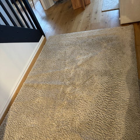 «Langhåret» brunt gulvteppe, 220x160cm. Trenger nok en rens,jeg har skrubba og banka det i snøen,så det er ikke så ille. Gis bort. Hentes Krokstadelva