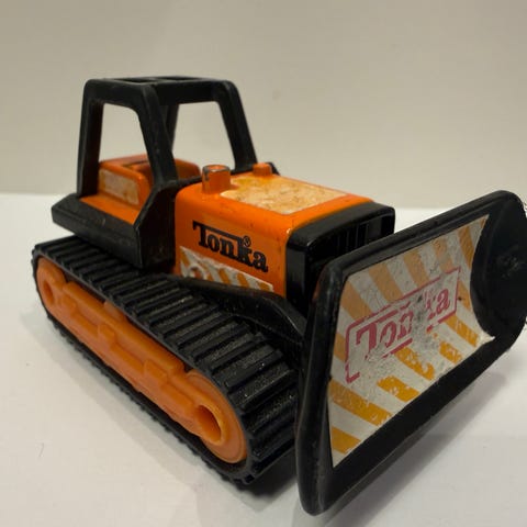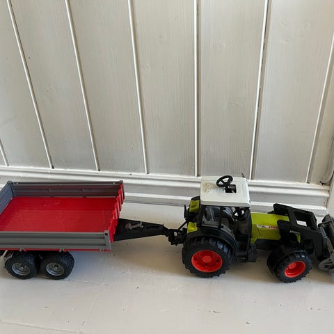 Bruder Komatsu D375A leketraktor bulldoser. Modellen har belter, førerhus med vinduer og stor frontskuffe. Egner seg som lekekjøretøy eller som samlermodell av anleggsmaskin iskala 1:50. Laget i Tyskland, med detaljer som trykket modellbetegnelse på sidene og markerte belter under. Mangler eksosrør.
