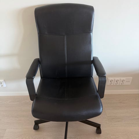 1 kontorstol i skinn selges for 400 kroner. Den er nesten ikke brukt og i veldig god stand.