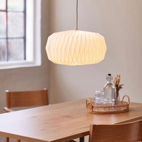 Lantern Pendel Large fra New Works i munnblåst frostet opal glass (ser hvit ut). Høyde er 40cm og diameter er 40 cm. Vekt 3,6 kg. Ny pris kr 5,000