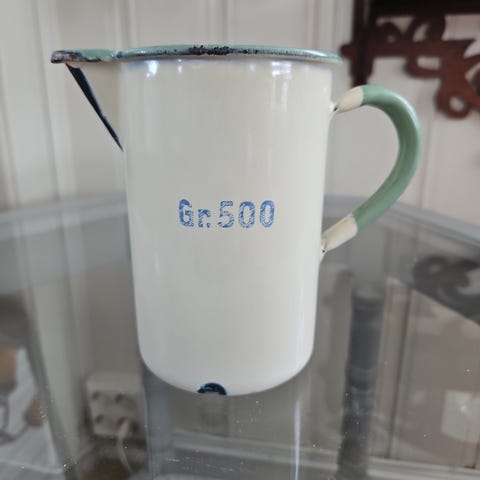Stor emaliet kopp med lokk
